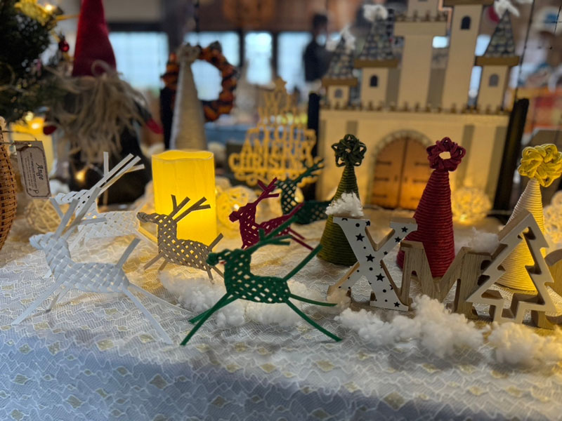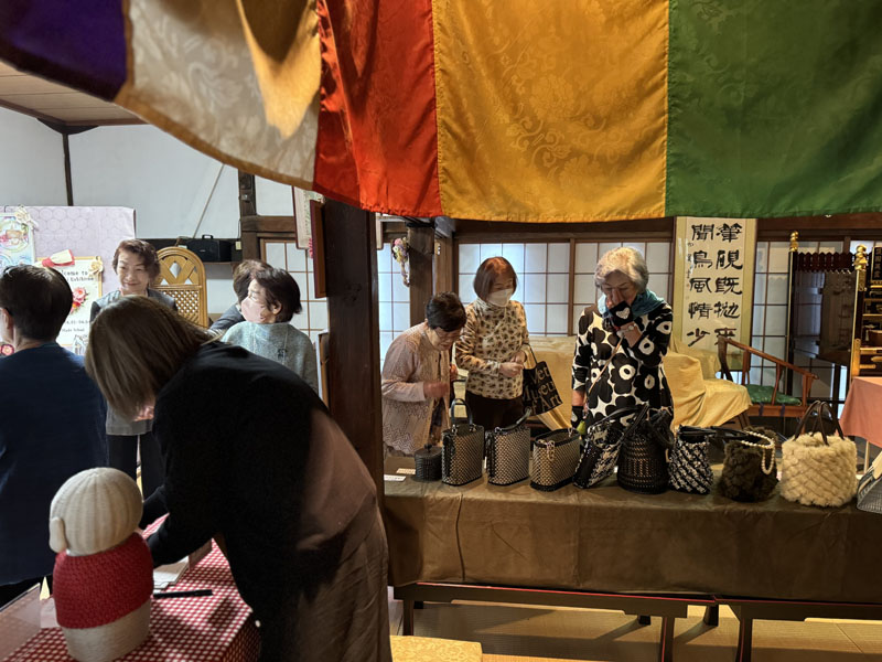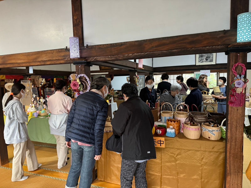 紙バンドの作品展での様子です。大勢の方にご来場いただきました。